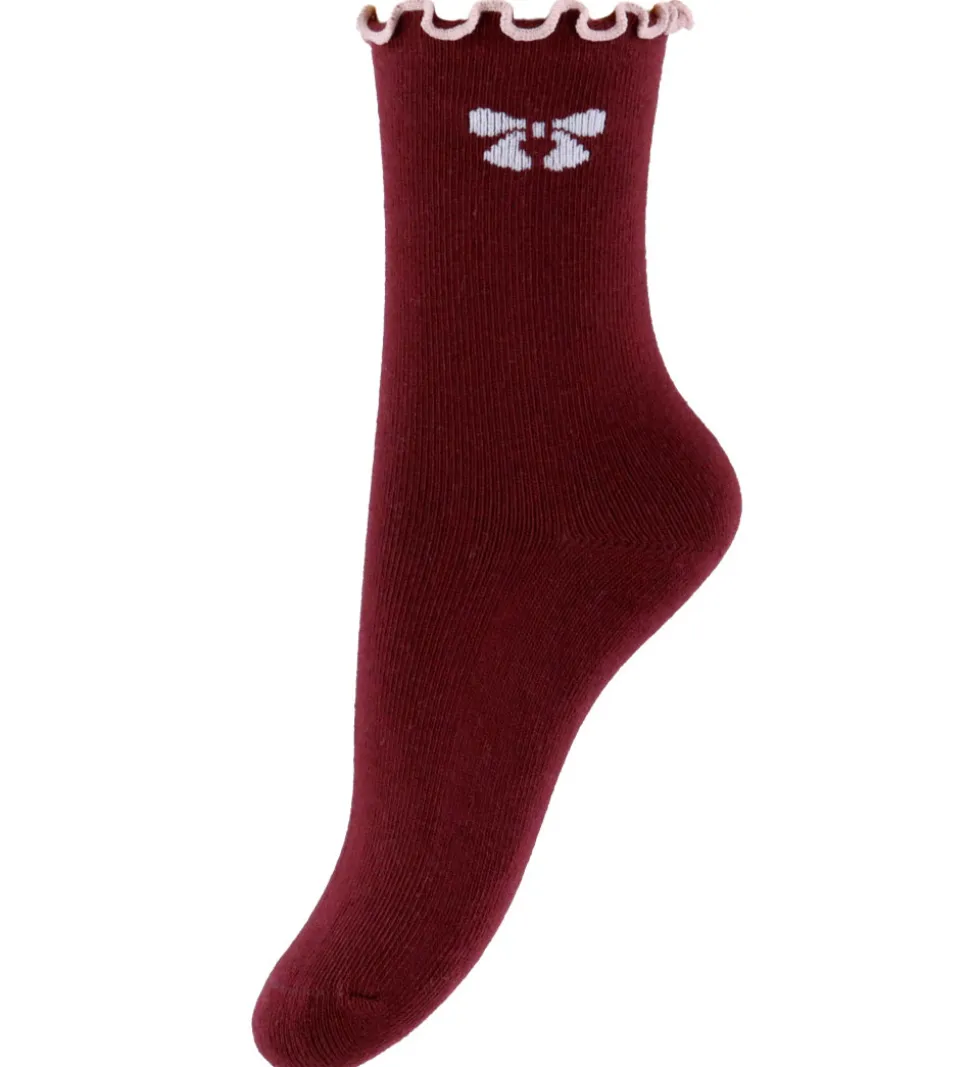 Fine Name It strømper solgt i en 3-pak med farverne bordeauxrød, rosa og meleret beige.