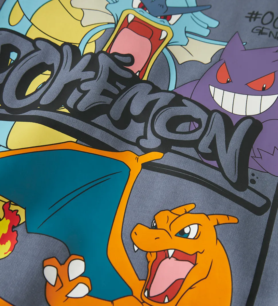 Smart Name It hættetrøje i støvet blå med teksten “Pokémon” i sort på fronten. På ryggen er der et stort, farverigt print af Pokémon-figurerne Gyarados, Gengar og Charizard. Name It sweatshirten har en praktisk hætte og lange ærmer. Den har ribkanter i ærme- og taljeåbning, og indvendigt er der blødt, børstet bomuld.