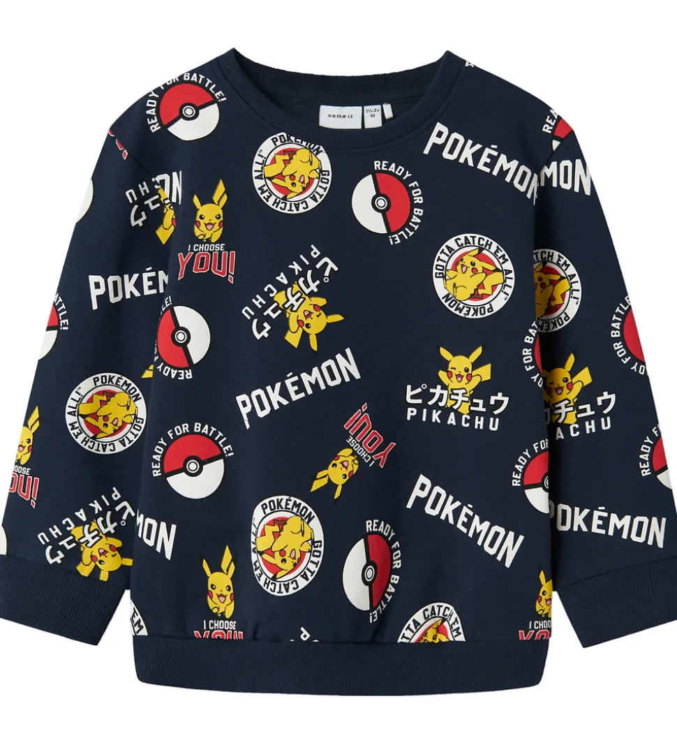 Sej Name It sweatshirt i navyblå med et farverigt Pokémon-print. Name It sweatshirten er udsmykket med motiver af Pikachu, Pokéballs og tekstprint. Name It sweatshirten har en rund halsudskæring og lange ærmer med ribkanter ved alle åbninger. Indvendigt er der blødt, børstet bomuld.