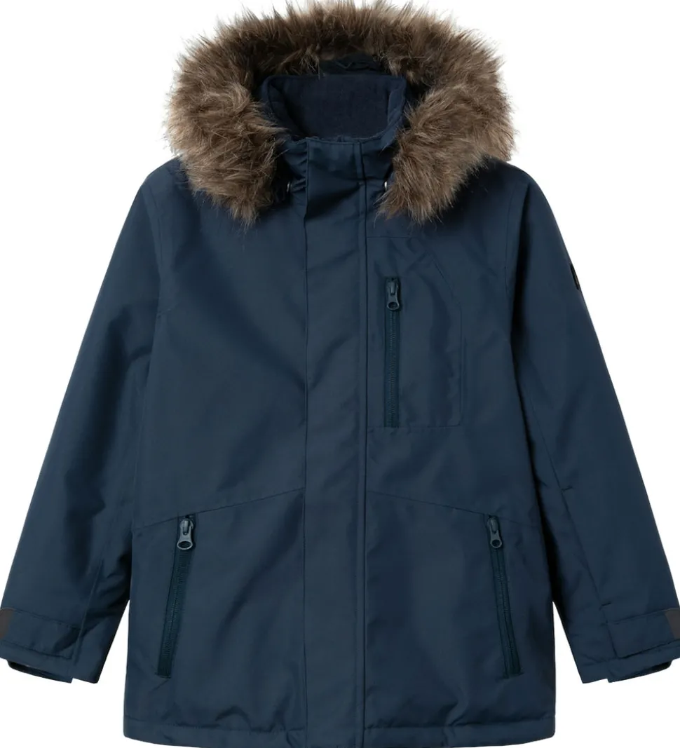 Smart Name It vinterjakke i navyblå med en lækker kant af imiteret pels på hætten.