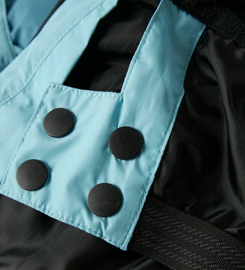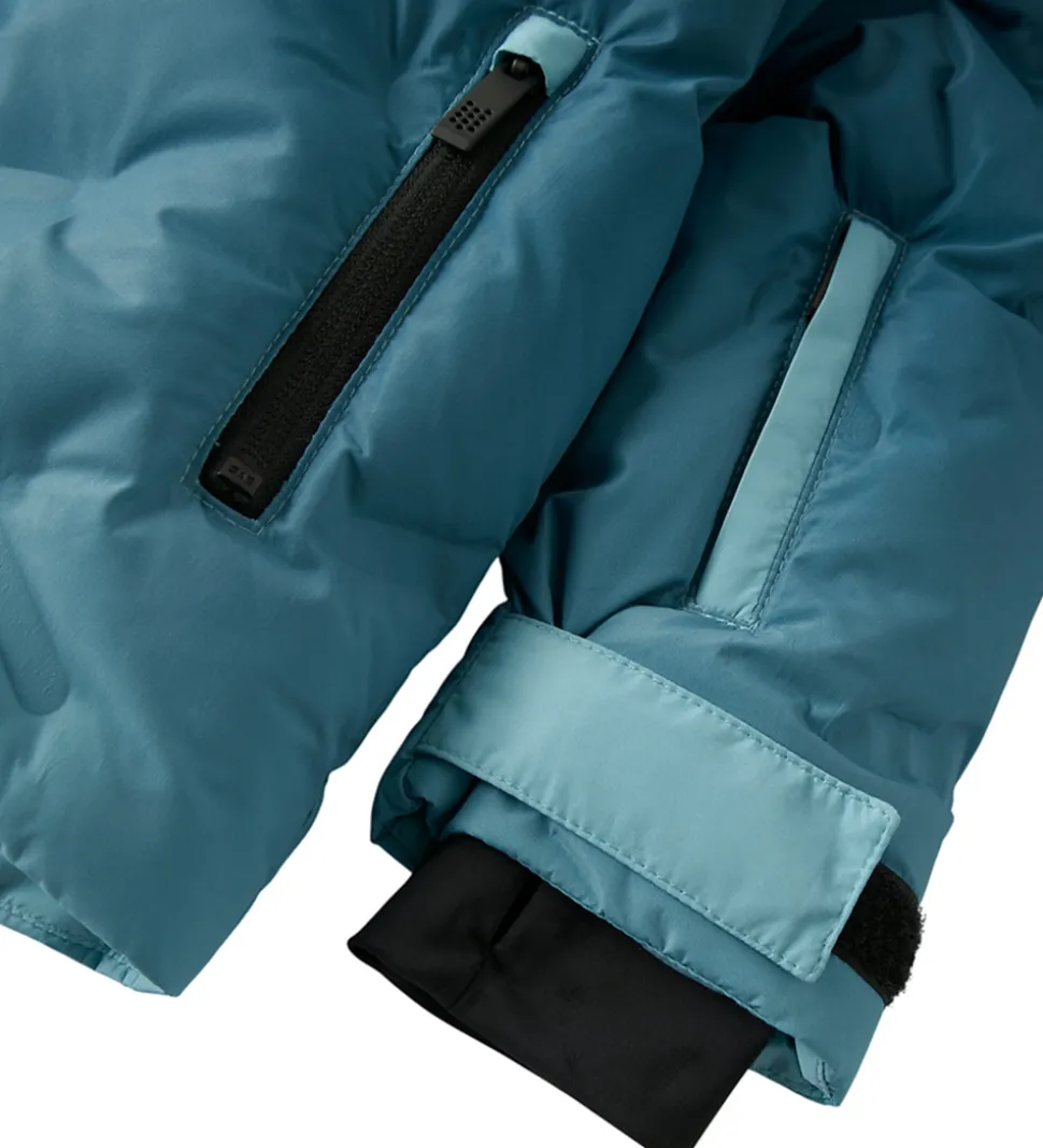 I livåbningen er der en indvendig elastikkant, som kan lukkes med trykknapper og fungere som snefang. Vinterjakken har en varm vattering og har både et glatvævet for og fleecefor.