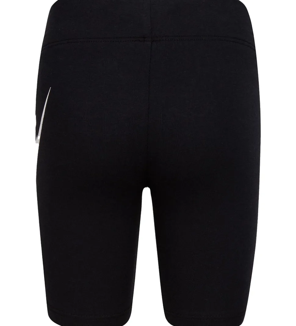 Skønne Nike cykelshorts i sort med et stort, hvidt logoprint på venstre ben. Nike cykelshortsene har en god elastik i taljen og en tætsiddende pasform med korte ben.