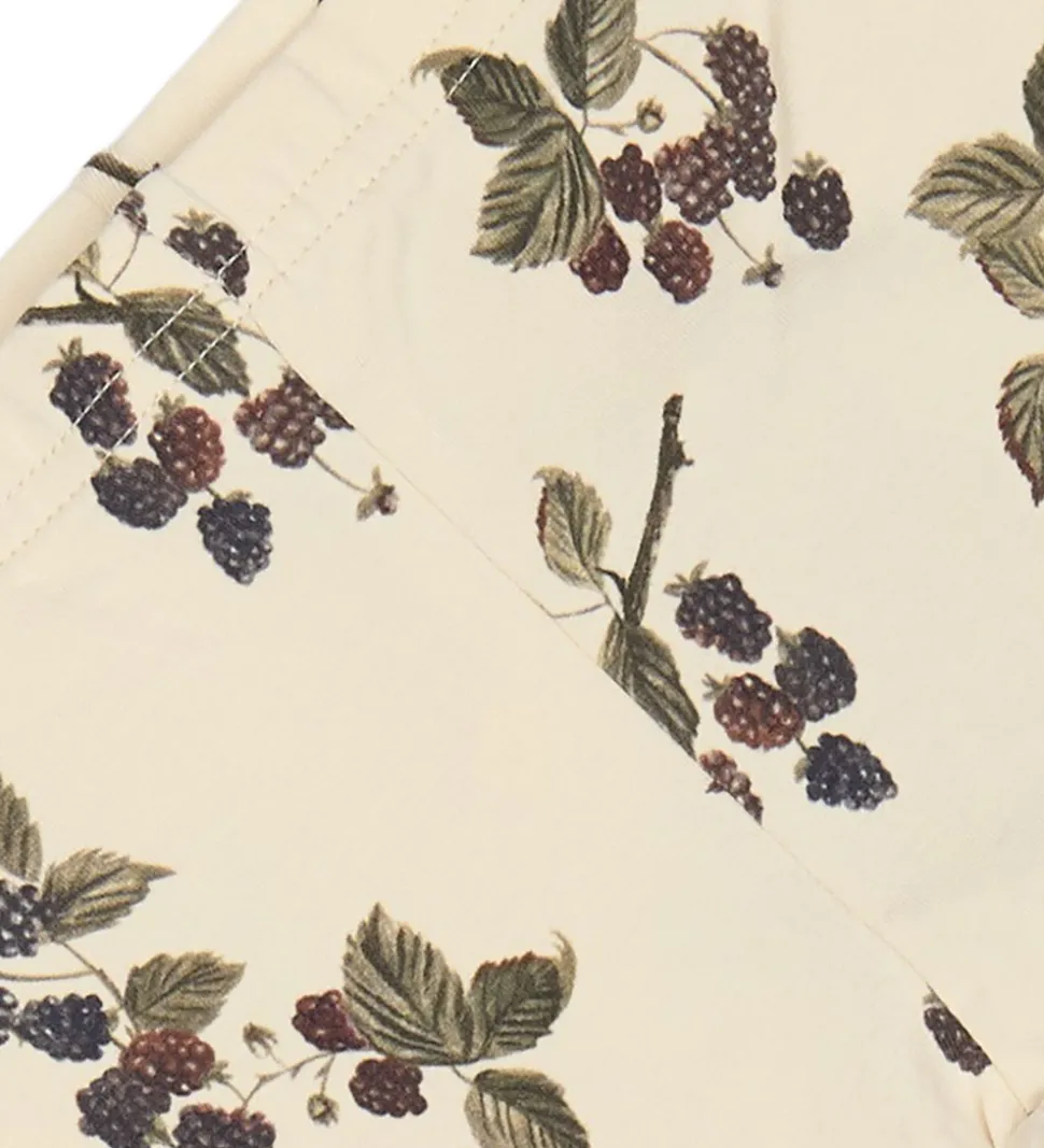 Attraktive Petit Piao leggings med et delikat brombærprint på en lys baggrund. Petit Piao leggingsene har en elastisk talje, der sikrer en god pasform.