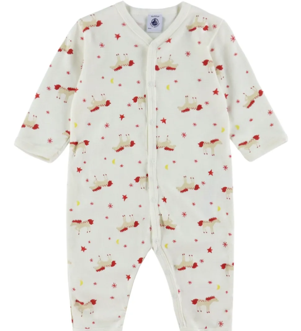 Charmerende natdragt fra Petit Bateau i hvid. Natdragten er dekoreret med et alloverprint af små, røde stjerner og søde heste.
