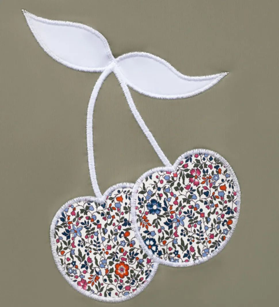 Smart Petit Crabe badeheldragt i støvet grøn med to store, blomstrede kirsebær på ryggen.