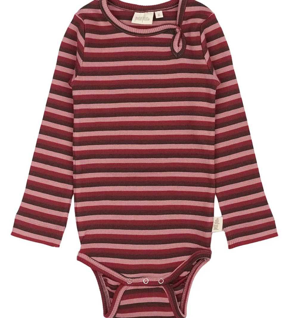 Flot Petit Piao body med lange ærmer, designet i et stribet mønster i nuancer af dyb rød og rosa. Den har en fin ribstruktur, der giver et tidløst udseende.