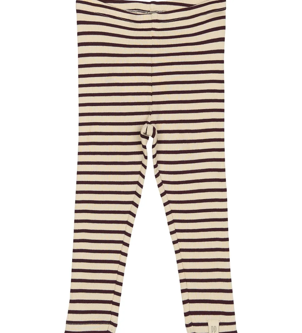 Stilfulde Petit Piao leggings i beige med et bordeaurøde striber og med en flot ribstruktur. Petit Piao leggingsene har en elastisk talje, som sikrer en god pasform.