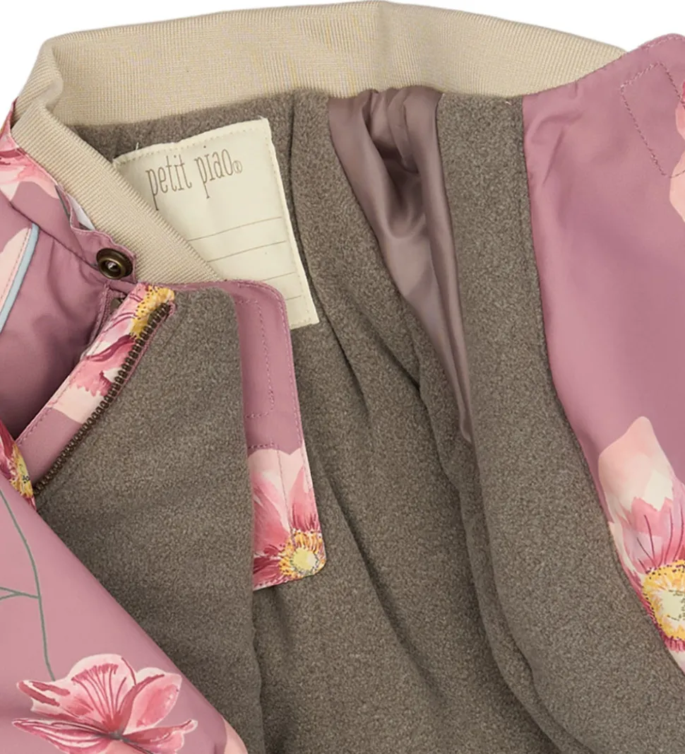Skøn Petit Piao vinterjakke i rosa med et alloverprint af efterårsanemoner. Vinterjakken er med praktiske reflekspipings og et broderet logo fortil.