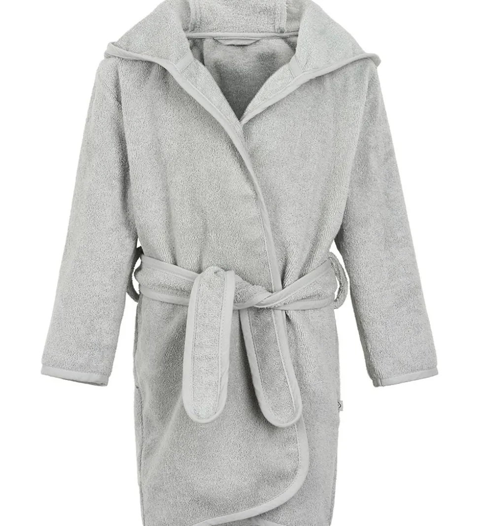 Fin Pippi Baby badekåbe i grå med en fastsyet hætte udformet som en kanin med store ører.