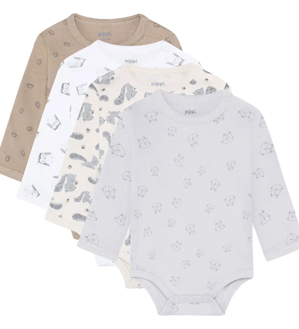 Søde Pippi Baby bodyer solgt i en 4-pak med følgende designs: