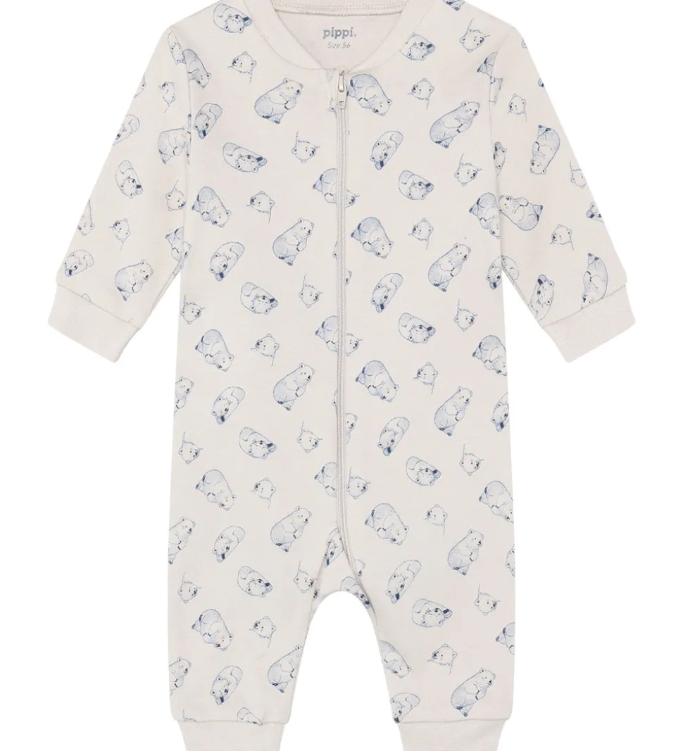 Pippi Baby heldragterne har lange ærmer og ben med brede ribkanter. De åbnes på fronten ved hjælp af en gennemgående lynlås fra halsåbningen til venstre ben. I halsåbningen er der en smal ribkant, og heldragterne er i en lækker bomuldskvalitet.