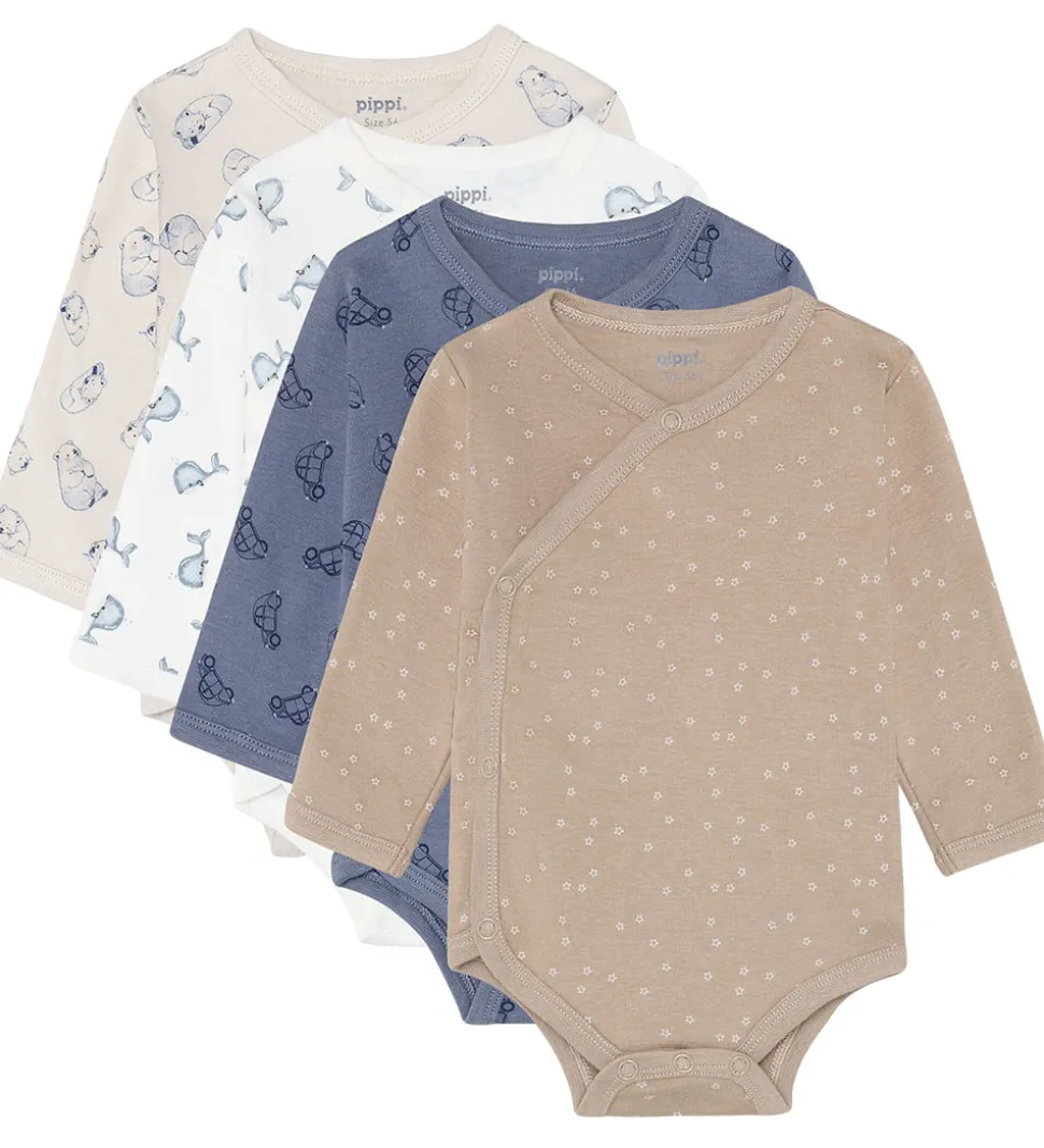 Smarte Pippi Baby bodyer solgt i en 4-pak med følgende designs: