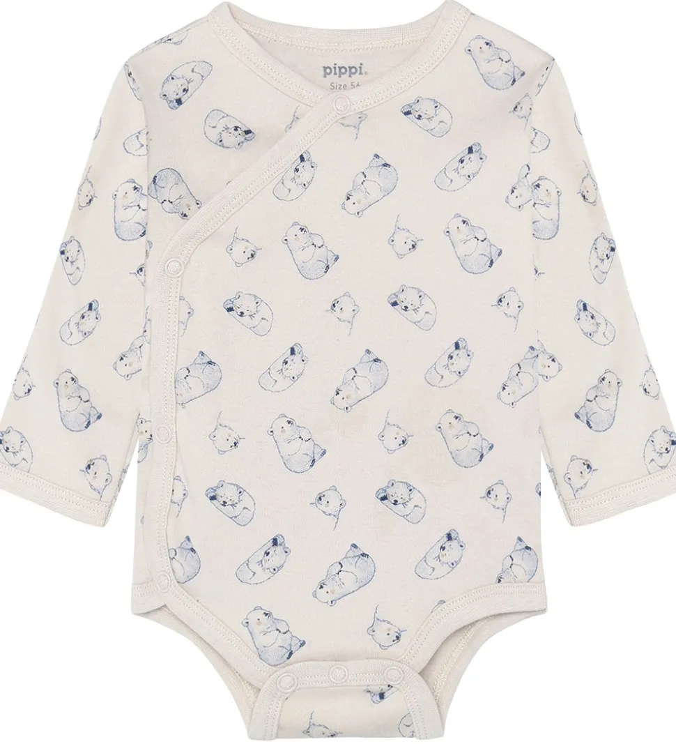 Pippi Baby bodyerne har lange ærmer med smalle ribkanter omkring alle åbninger. Bodyerne har et praktisk slå-om design med trykknapper ned langs begge sider. I bunden lukkes bodyen med tre praktiske trykknapper.