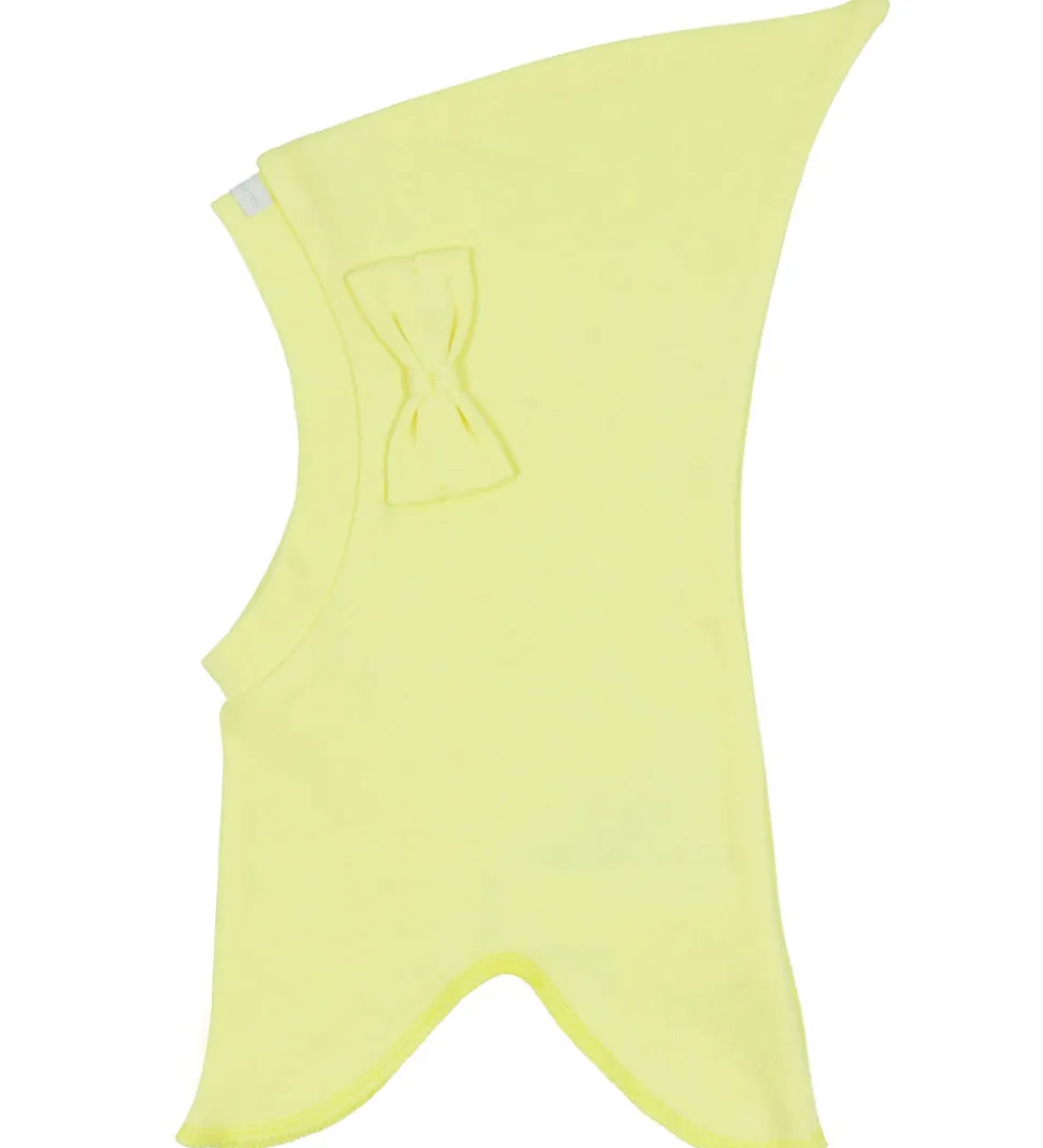 Sød Racing Kids elefanthue i skarp gul med en sløjfe på venstre side og en logoapplikation på toppen foran.