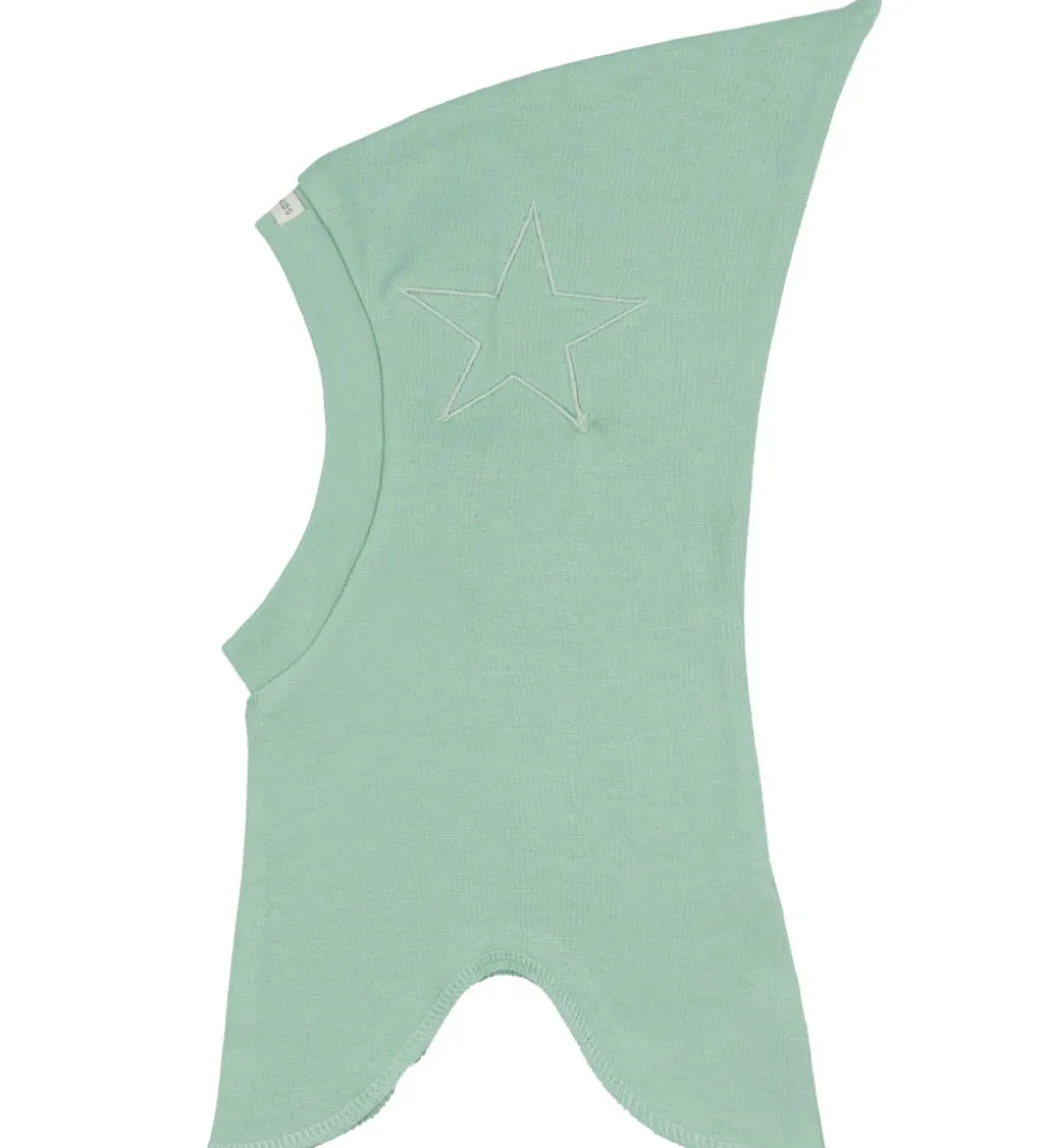 Sød Racing Kids elefanthue i støvet lysegrøn med en broderet stjerne på venstre side. Der er også en logoapplikation på toppen foran.