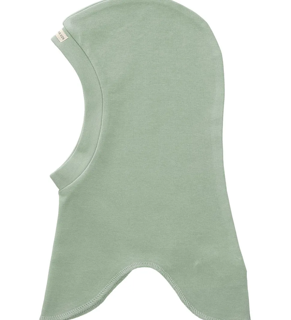 Pæn Racing Kids elefanthue i støvet lysegrøn med en logoapplikation på toppen af ribkanten ved ansigtsåbningen.