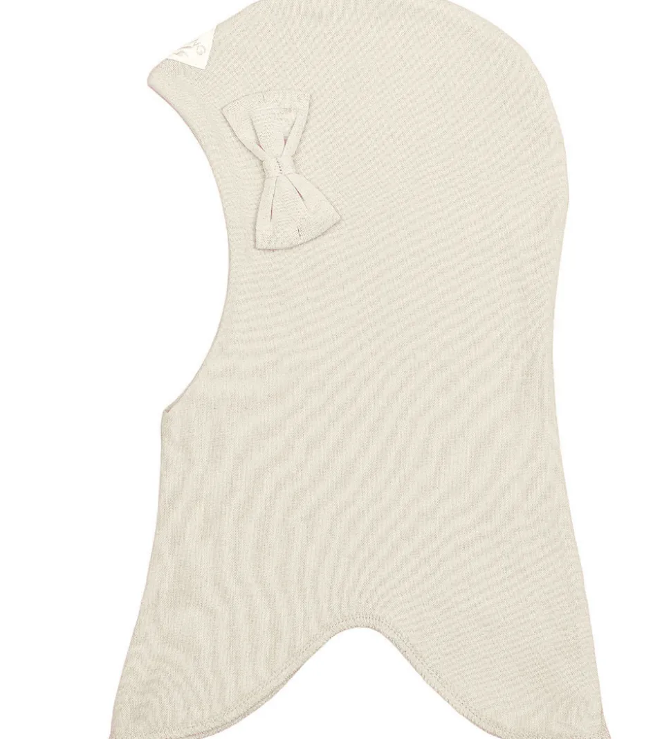 Sød Racing Kids elefanthue i cremehvid med en dekorativ sløjfe på venstre side og en logoapplikation på toppen.