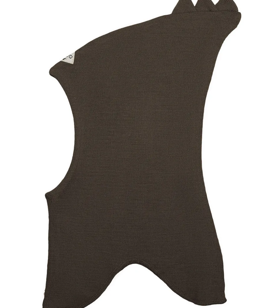 Lækker Racing Kids elefanthue i mørkebrun i en strikket kvalitet.