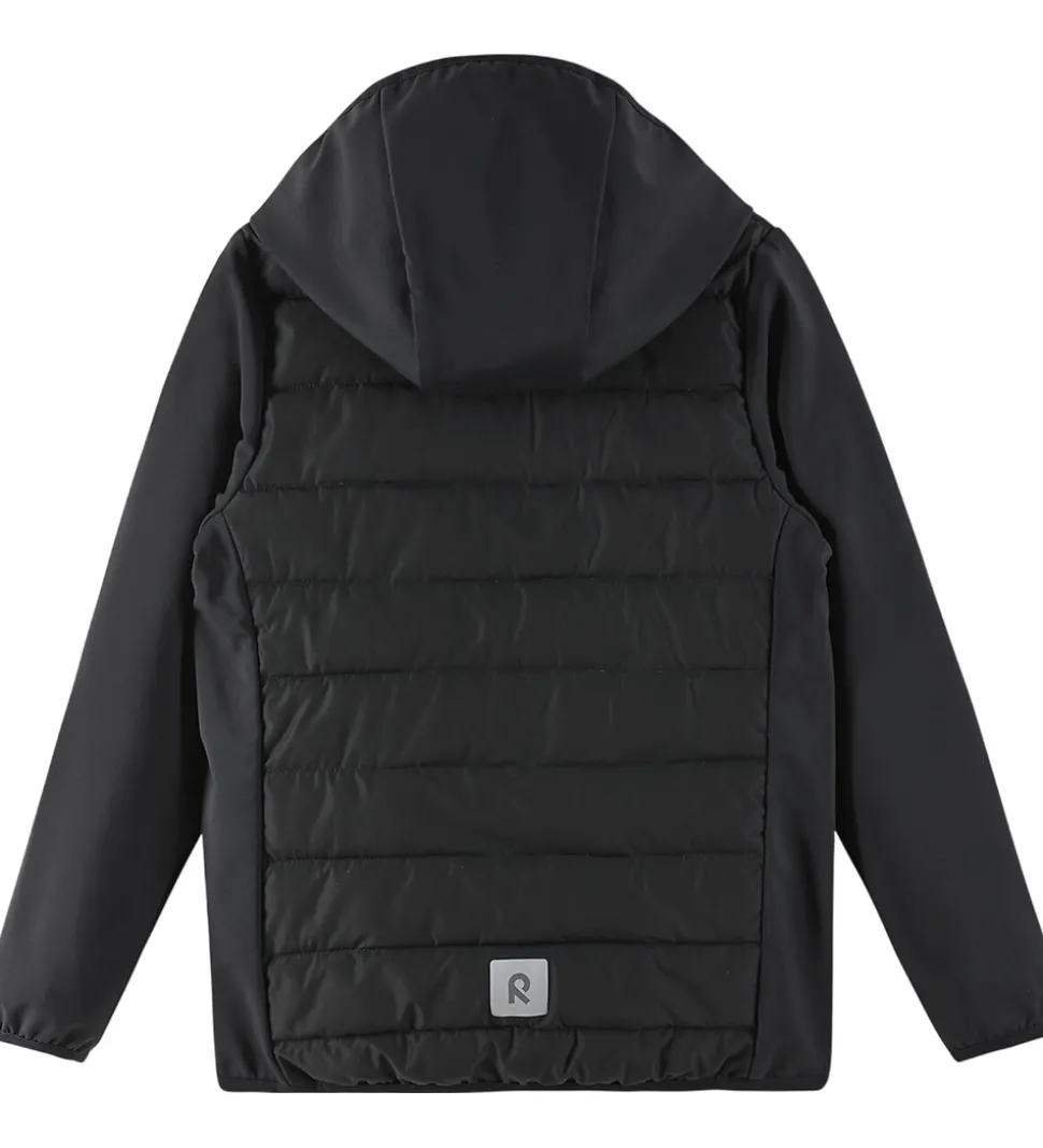Dynejakken har en lun polyestervattering, og hætten, ærmerne og siderne er lavet softshell med blødt fleece på indersiden. Dynejakken har praktiske reflekser.