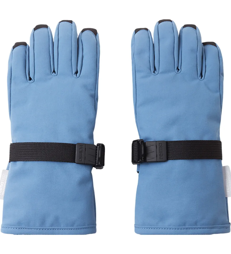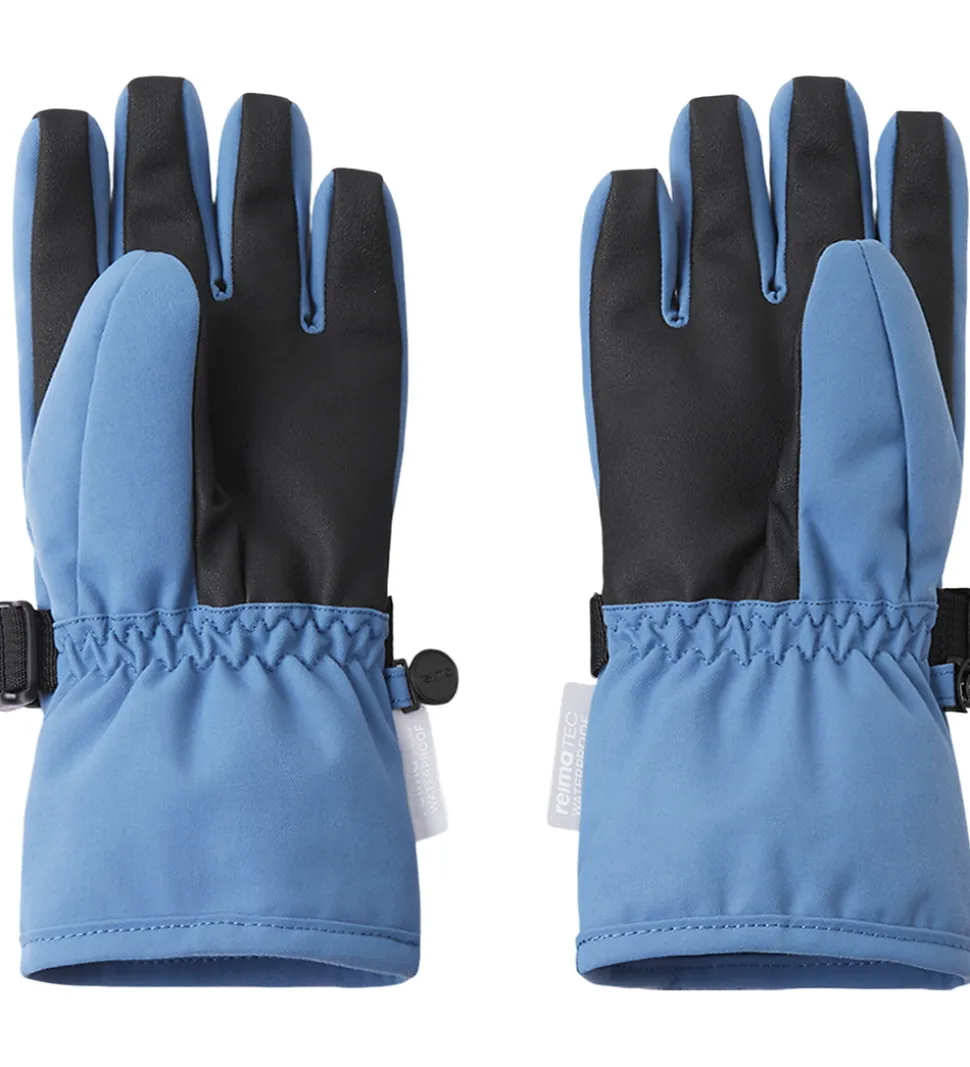 Reima hanskerne har elastikkanter, og omkring håndleddene kan de strammes ind med en justerbar rem.