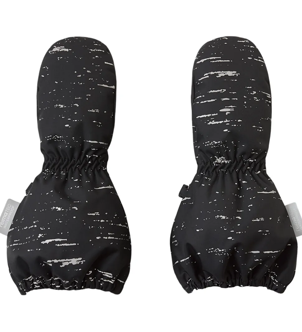 Praktiske Reima luffer i sort med et fint alloverrefleksmønster.