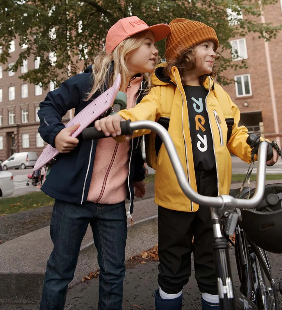 Reima softshelljakken har en aftagelig hætte, der sidder fast med trykknapper. Omkring håndleddene er der smalle elastikkanter. Softshelljakken åbnes fortil ved hjælp af en lynlås med indvendig vindstolpe og hagebeskytter. På fronten er der en brystlomme i venstre side, som lukkes med en lynlås.