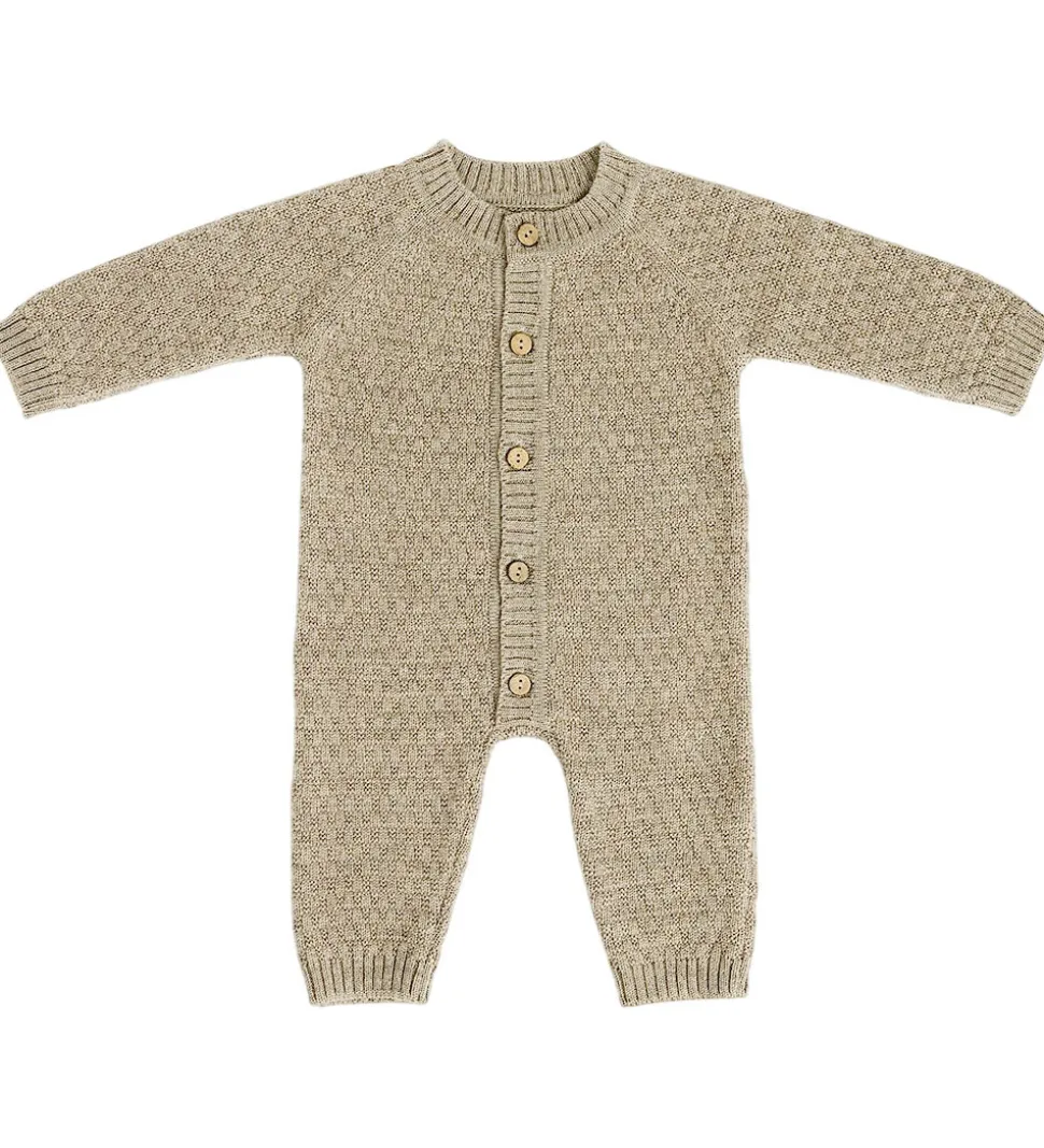 Praktisk Smallstuff heldragt i ensfarvet beige med en flot strikstruktur.