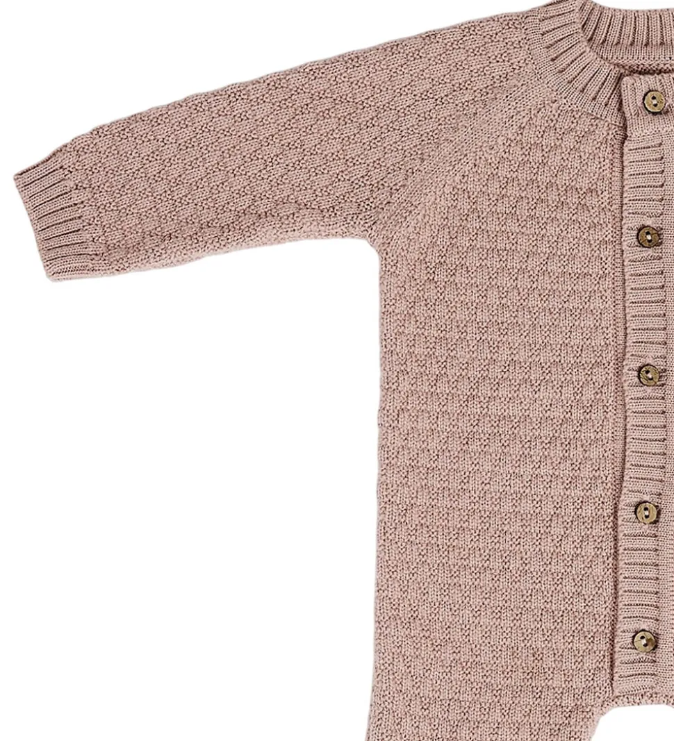 Smallstuff heldragten har lange ærmer og ben med ribkanter. Den har knaplukning foran, hvilket gør den nem at tage af og på. Heldragten er lavet i en strikket kvalitet af blødt merinould.