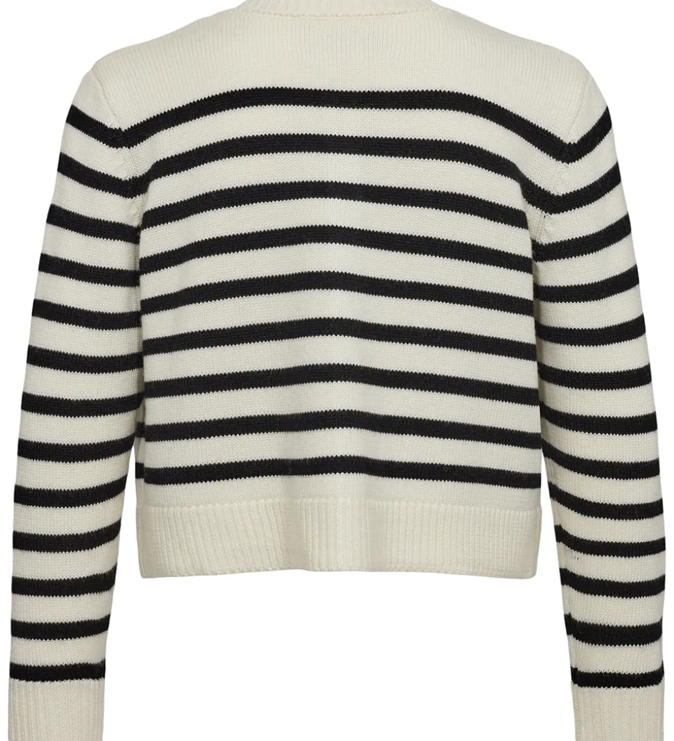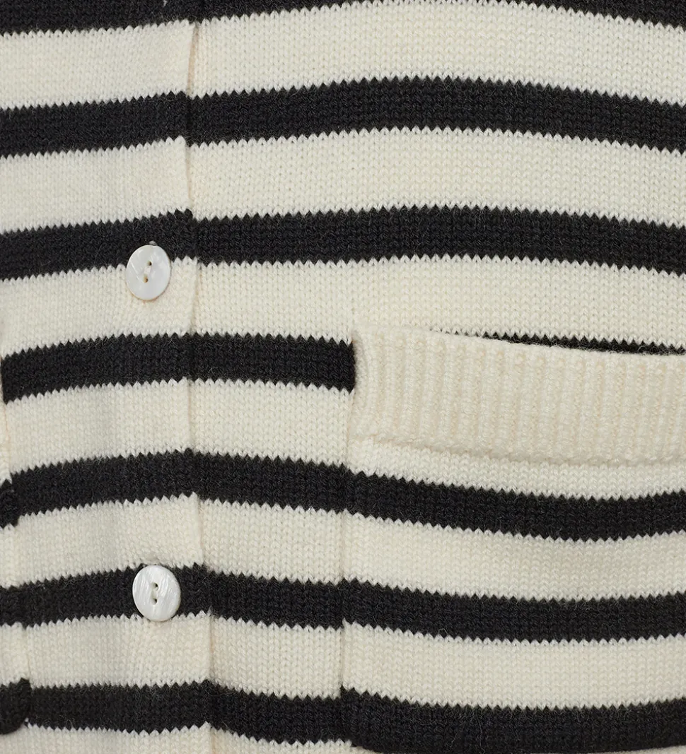 Skøn Sofie Schnoor cardigan i cremehvid med brede, sorte striber.