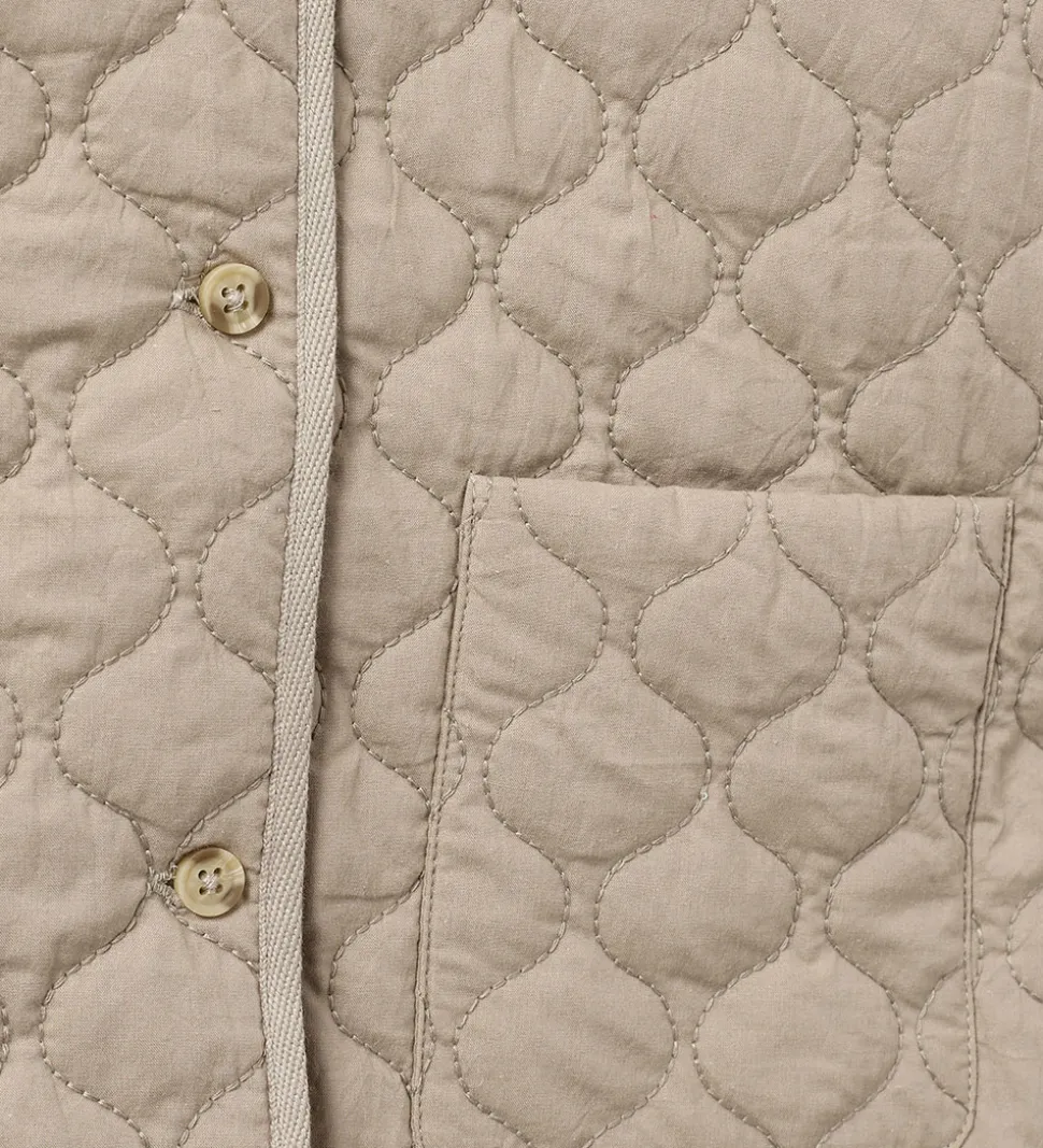 Lækker Sofie Schnoor jakke i en beige nuance med quiltet design og praktiske lommer. Den har lange ærmer og knaplukning, hvilket giver et stilrent look. Jakken har en let vattering.