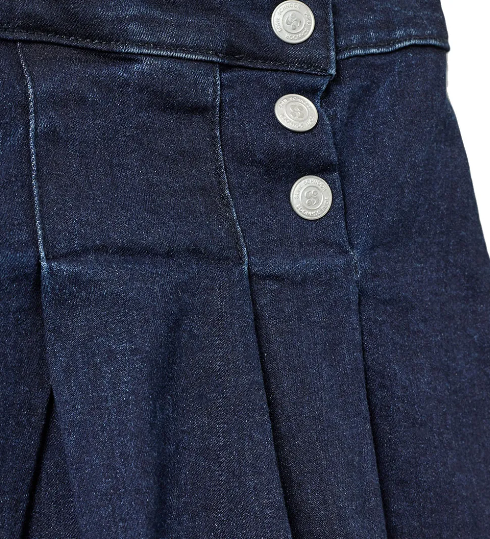 Lækker Sofie Schnoor nederdel i en klassisk mørk denim med dekorative knapdetaljer. Nederdelen har et enkelt design, der gør den let at style til forskellige anledninger.