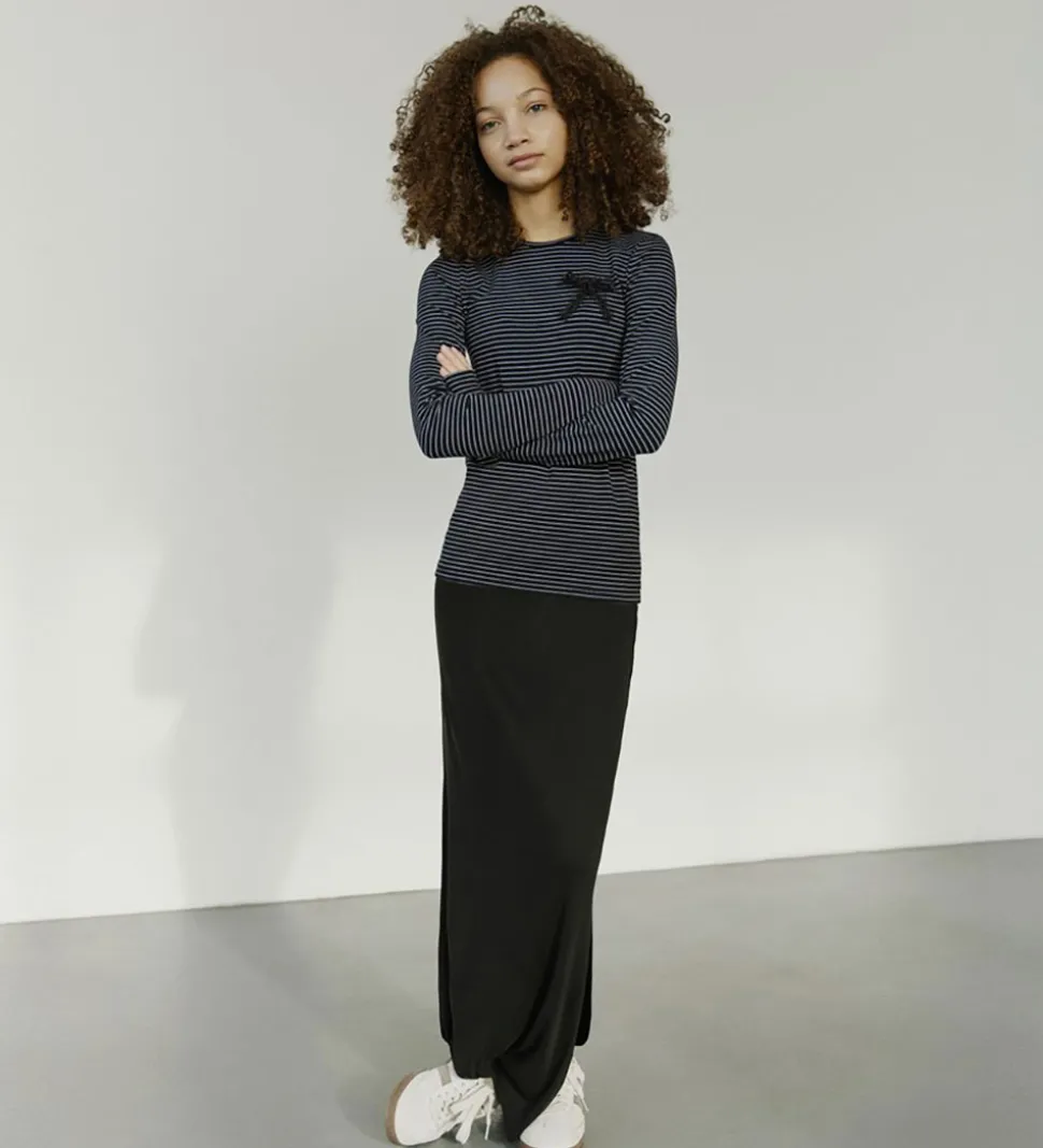 Elegant Sofie Schnoor nederdel i klassisk sort design. Sofie Schnoor nederdelen har en enkel A-form og en elastisk kant i livet, der sikrer en god pasform.