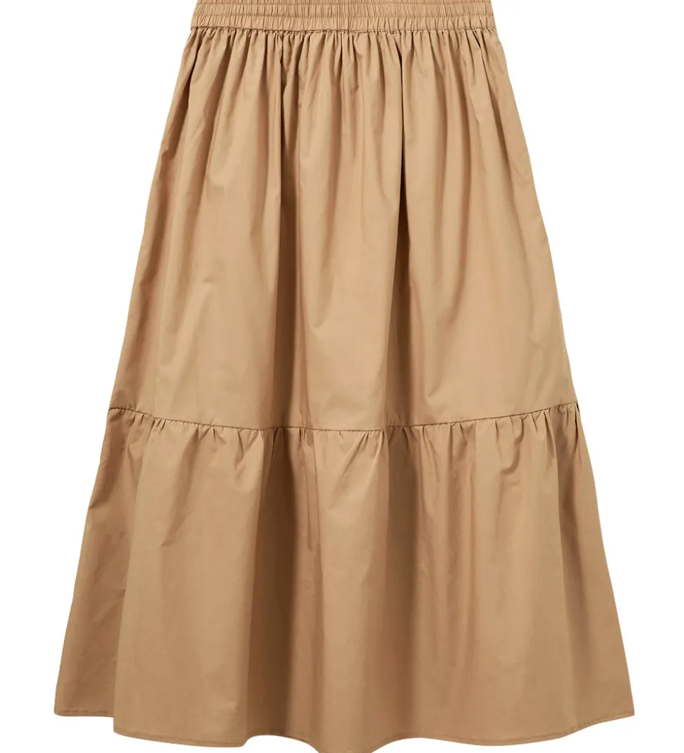 Skøn Sofie Schnoor nederdel i en fin lysebrun farve og med en bred flæsekant forneden, som giver skørtet masser af vidde.