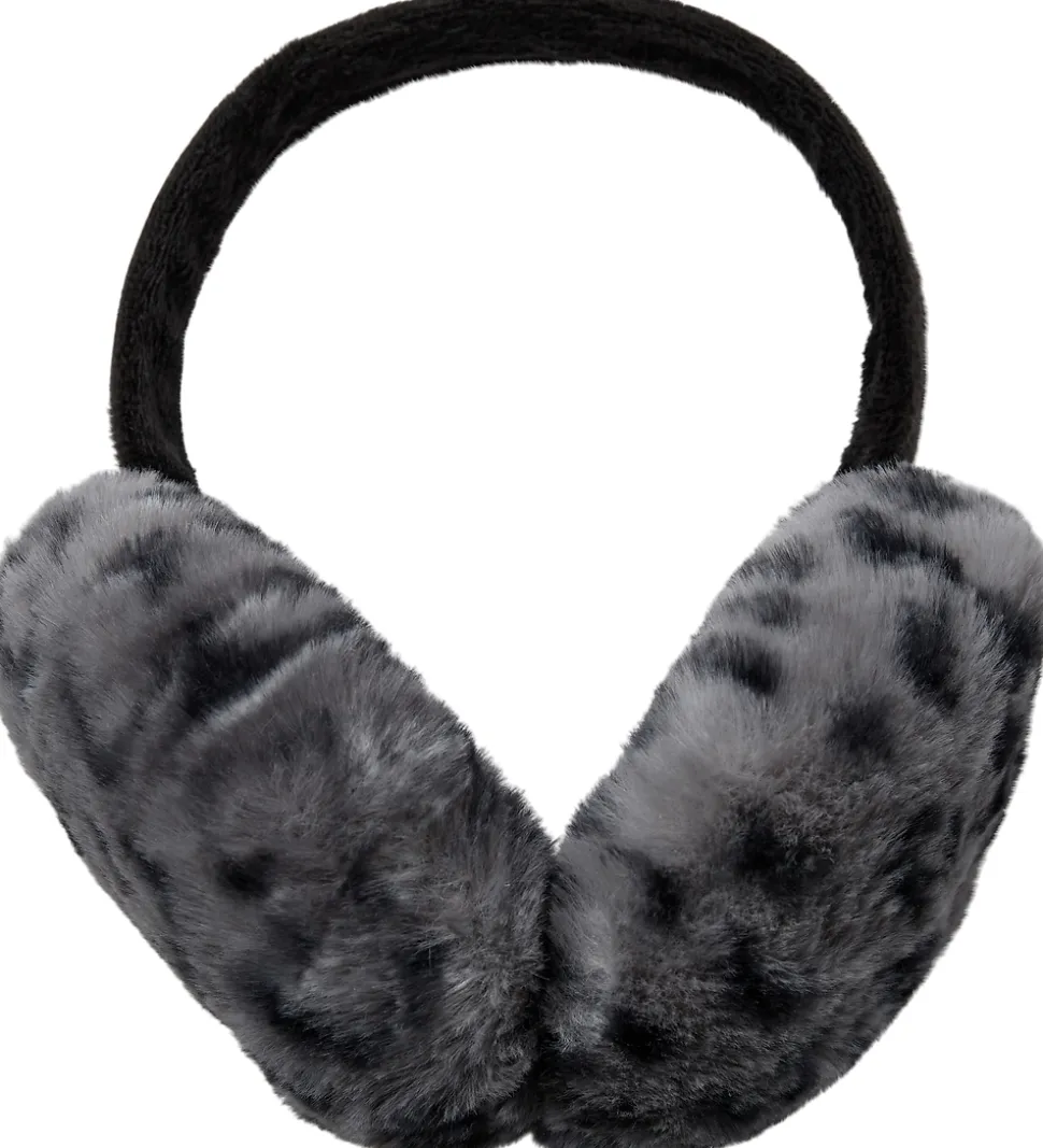 Lækre Sofie Schnoor ørevarmere med leopardprint af imiteret pels i sort og grå. Ørevarmerne består af plys, som giver dem et elegant udseende. Bøjlen er også betrukket med samme materiale, hvilket sikrer et ensartet look.