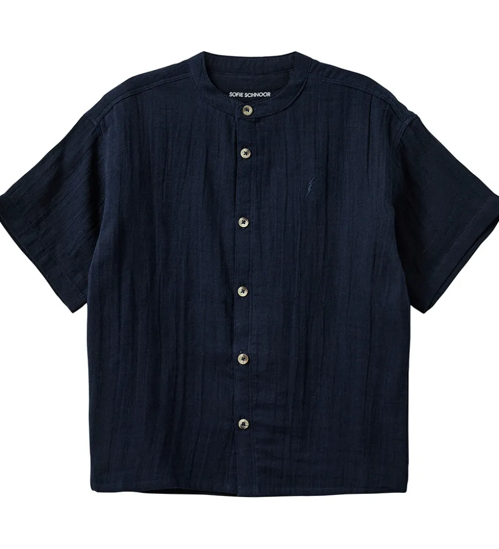 Lækker Sofie Schnoor skjorte i en dyb navy. Skjorten har et diskret logo på brystet, hvilket giver et stilrent udtryk.