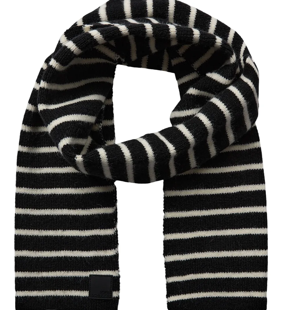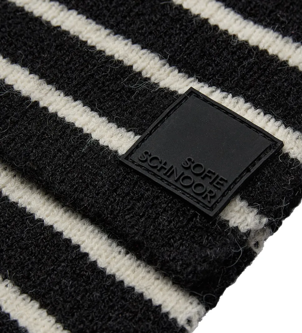 Flot Sofie Schnoor tørklæde med sorte og hvide striber. Sofie Schnoor tørklædet tilføjer et stilfuldt element til garderoben med et tidløst stribedesign, der er både praktisk og moderne.