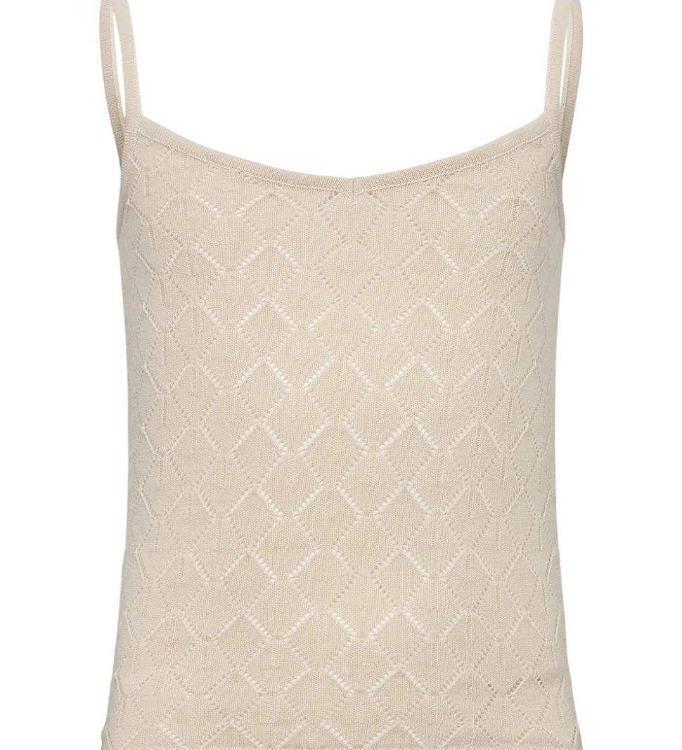 Flot Sofie Schnoor top i cremehvid med et elegant hulmønster af geometriske diamanter, der giver toppen et stilfuldt og moderne udtryk.