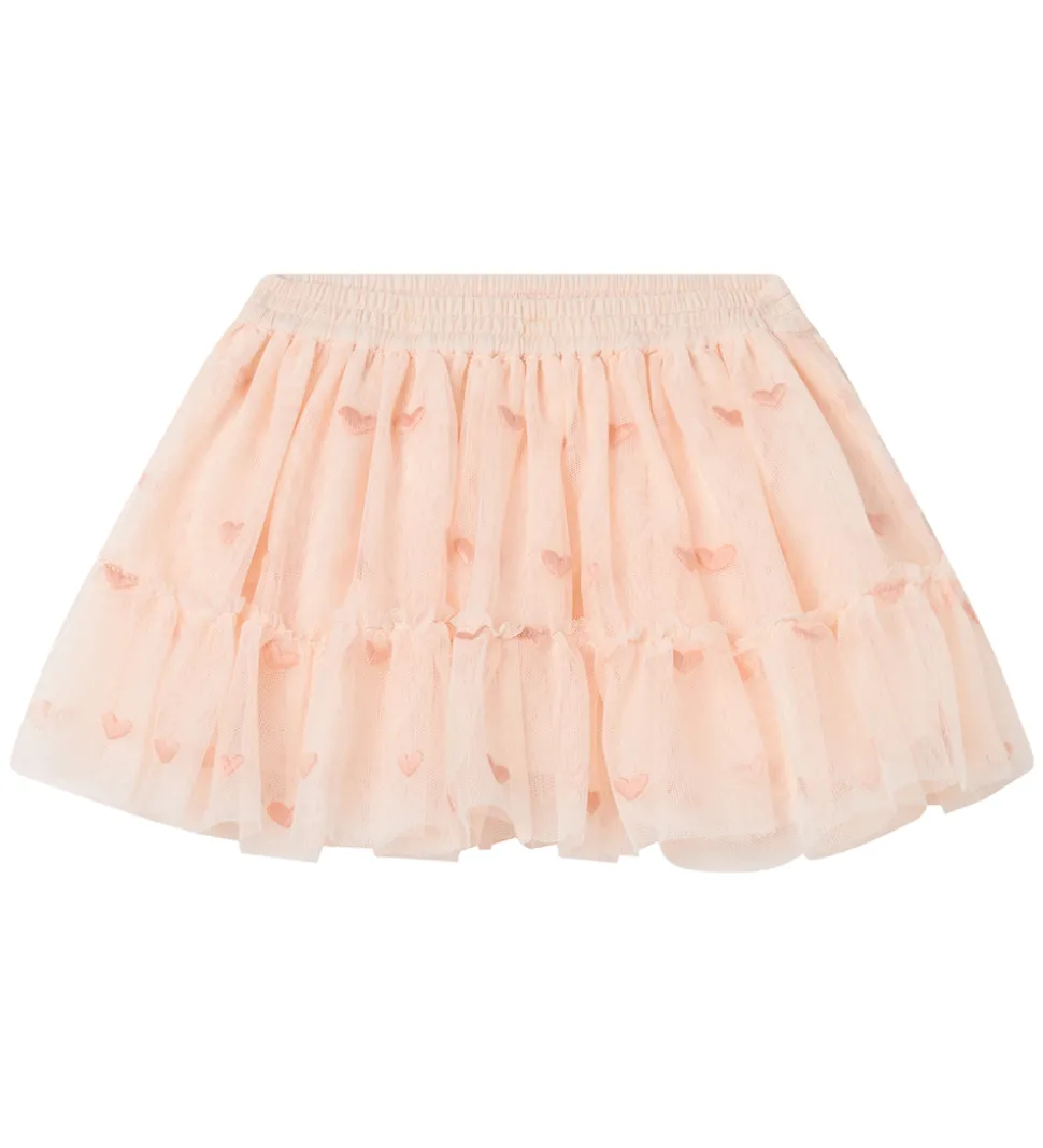 Sød Stella McCartney Kids tylnederdel i rosa med små, broderede hjerter.