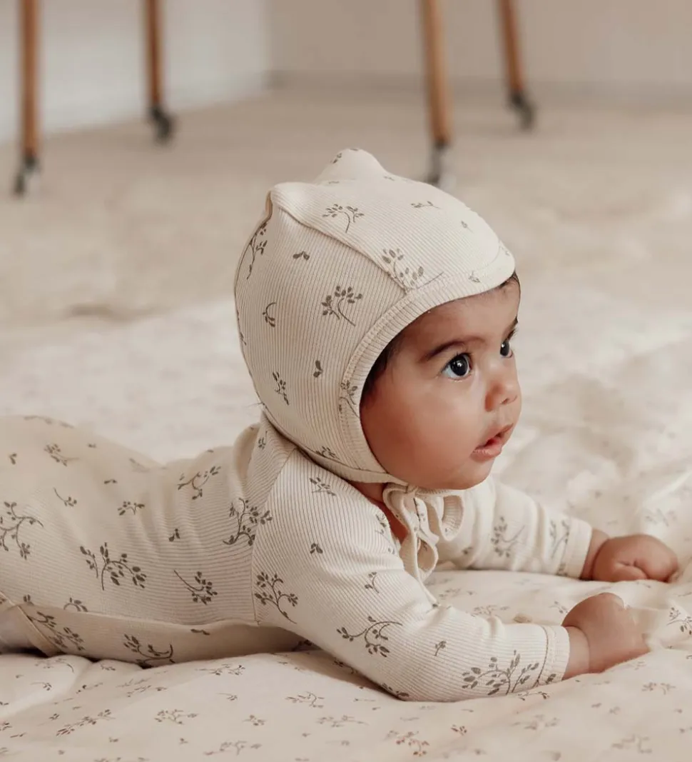 Skøn That’s Mine babyhjem i beige med et allover print af blade i grøn.