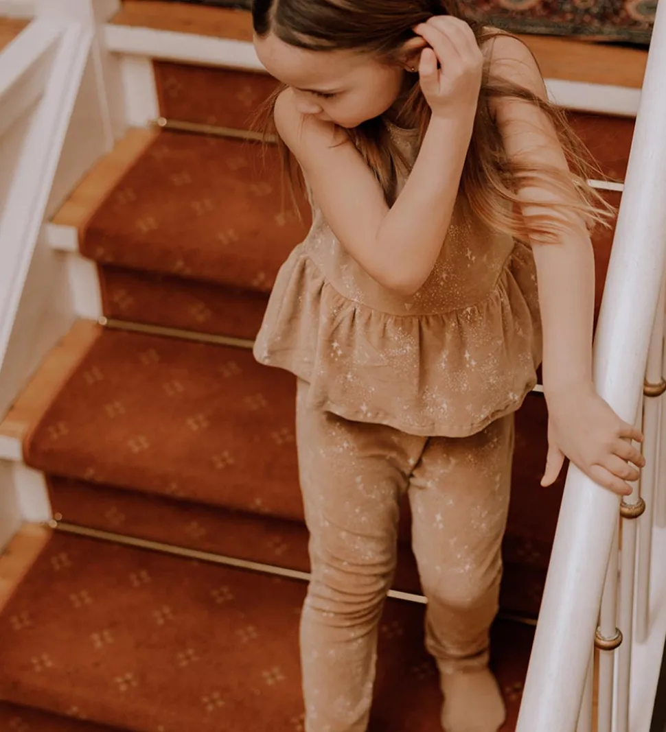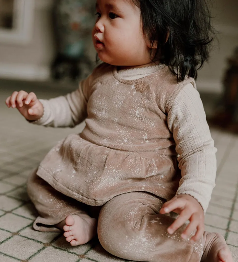 Yndig That’s Mine buksedragt i brun velour med et flot stjerne-print i hvid.