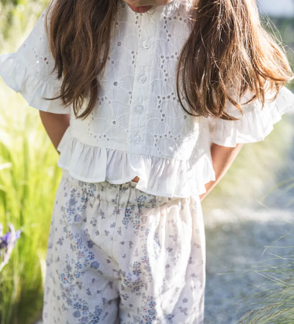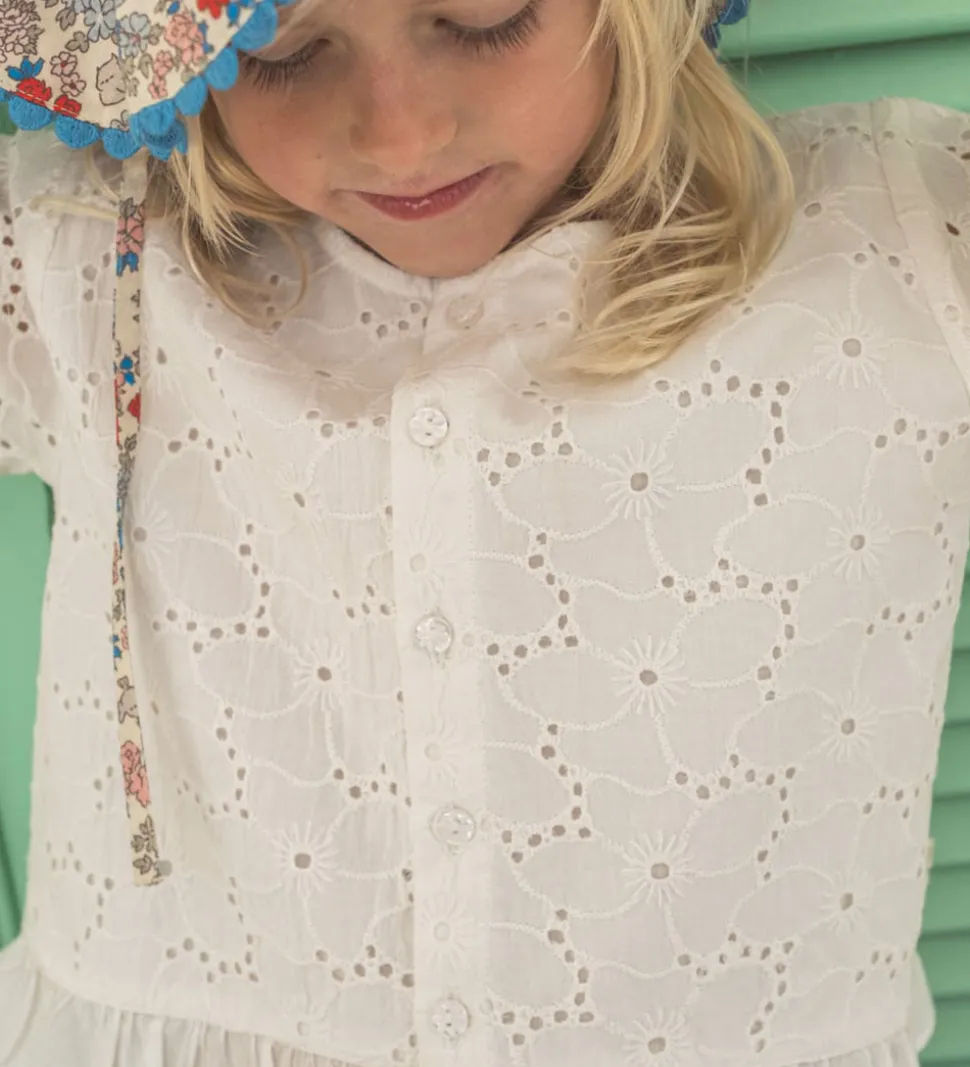 Lækker Thats Mine skjorte med korte ærmer i hvid med et broderie anglaise hulmønster, og med fine flæsedetaljer og knaplukning. Passer perfekt til enhver anledning og tilføjer et skønt touch til garderoben.