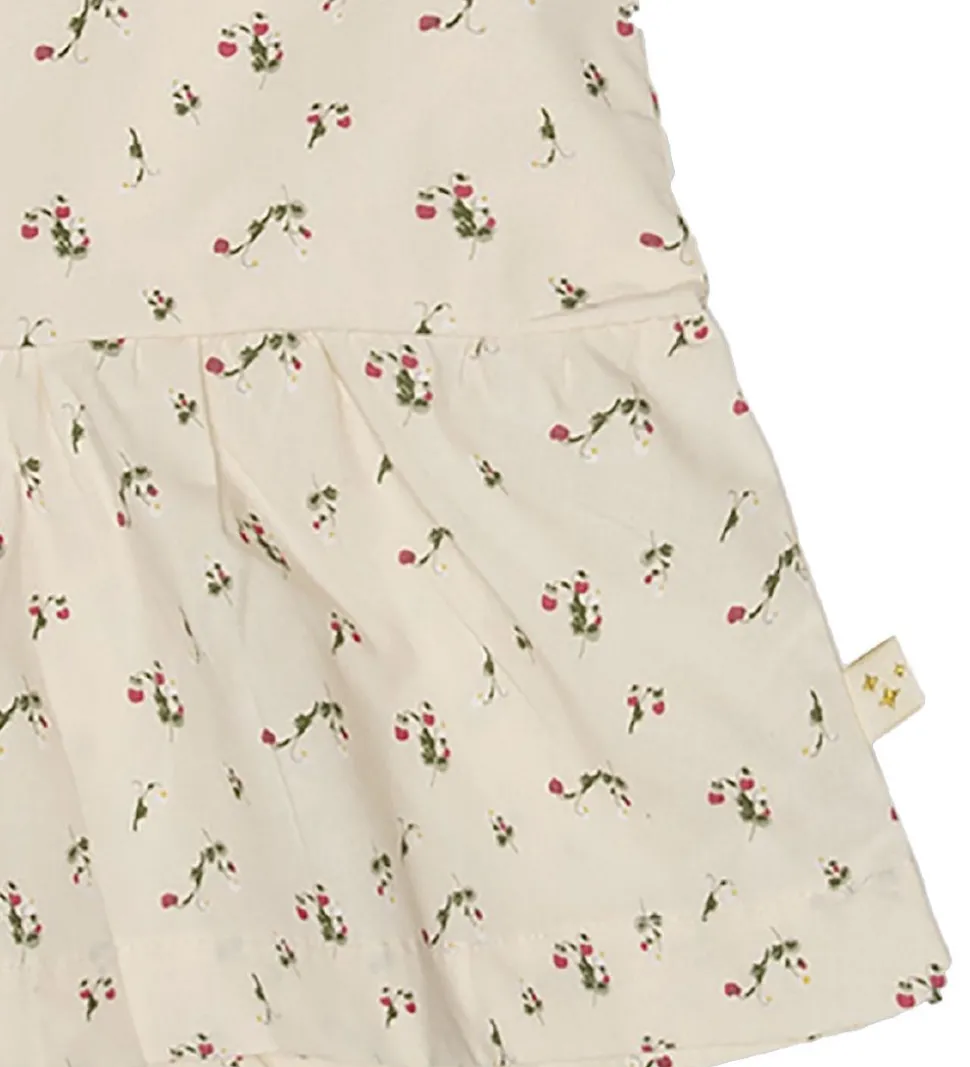 Fin That’s Mine Top i beige med allover print af røde jordbær og hvide blomster.