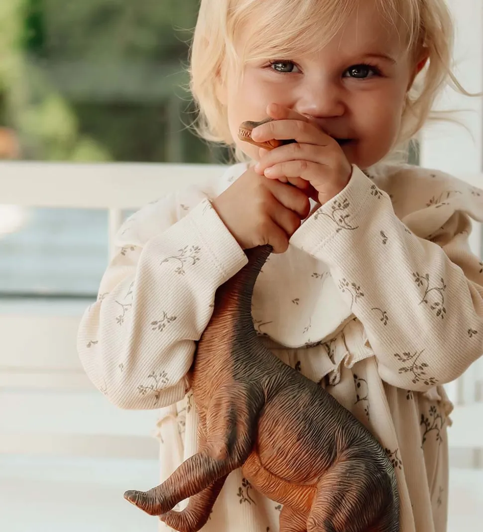Sød That’s Mine tunika i beige rib med et alloverprint af blade i en grøn nuance.
