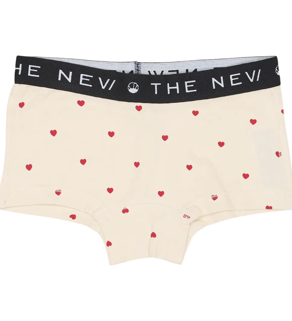 Smarte The New hipsters i en sampakning med to unikke designs. Den ene er i en klassisk rød farve, mens den anden er cremefarvet med små røde hjerter. Begge The New hipsters har en elastikkant med sort logo, der sikrer en god pasform.