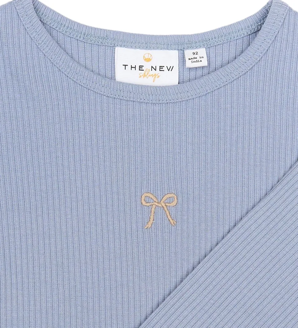 The New Siblings blusen er ribbet og prydet med en fin, lille sløjfe foran. De afsluttende kanter på ærmerne og blusens bund tilføjer et let bølget look.