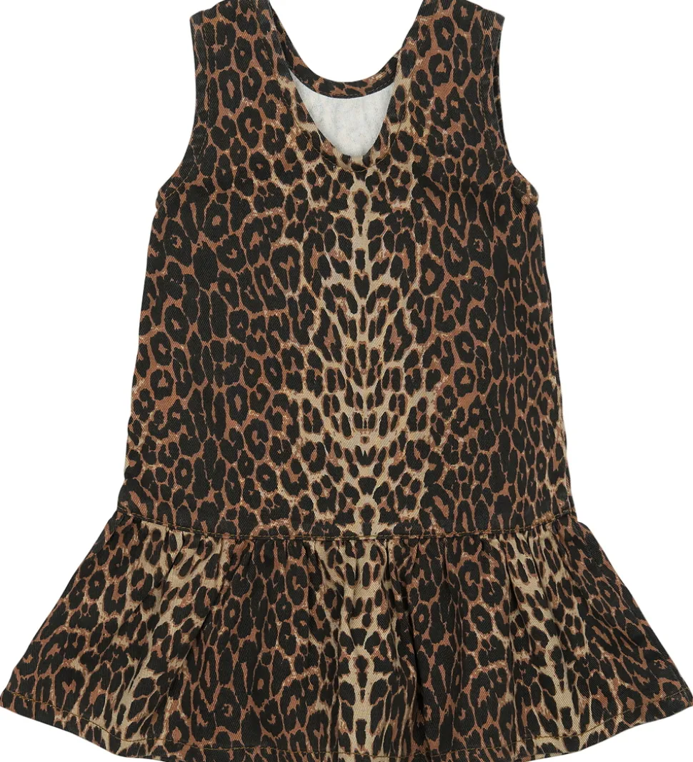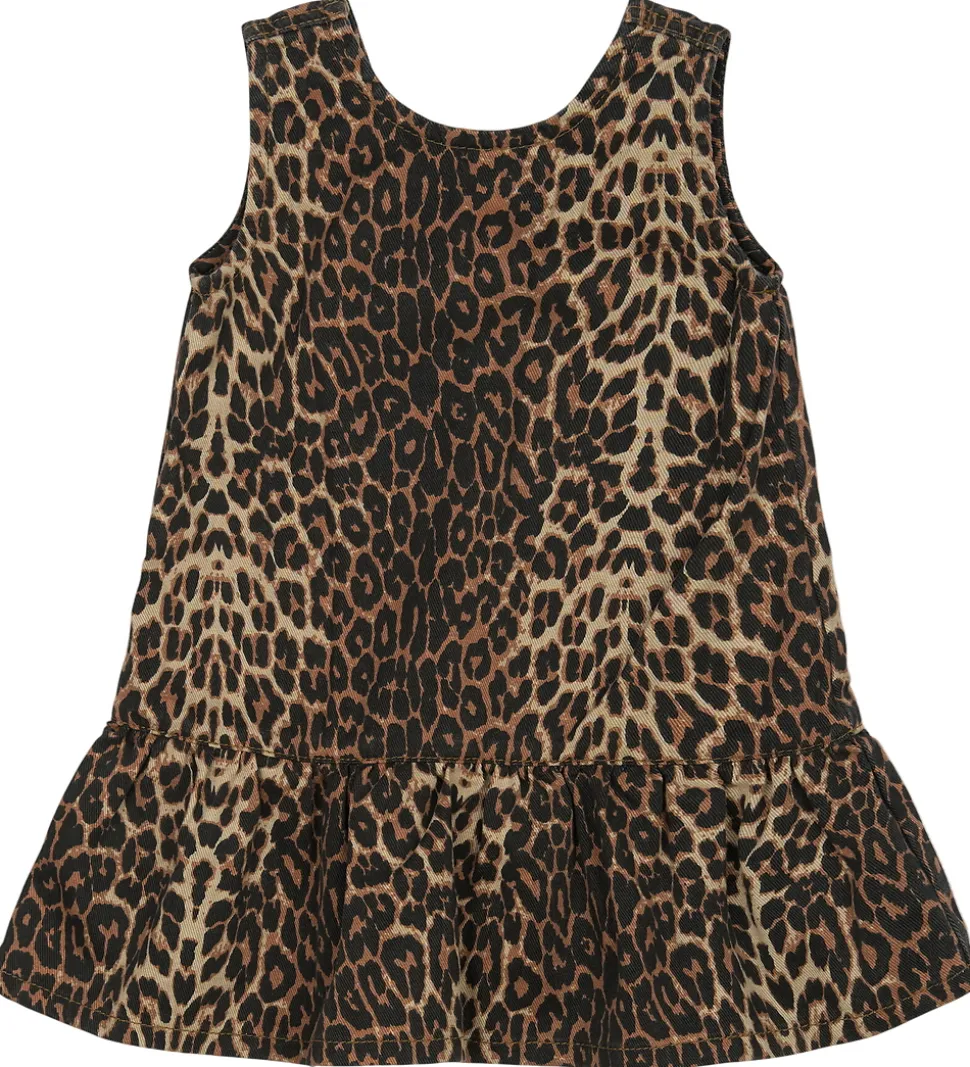 Smart spencer fra The New Siblings i twilldenim og med et allover leopardmønster i varme nuancer. The New Siblings spenceren har en behagelig og let pasform. Den er uden ærmer og med en feminin flæsekant nederst. Spenceren har en dyb. buet udskæring bagpå, som giver et fint touch, og gør det nemmere at få kjolen af og på.