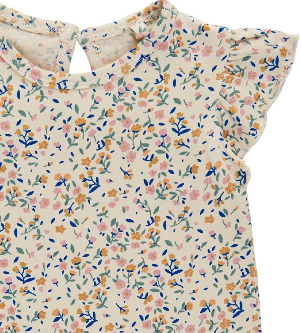 Fin The New Siblings top i creme med allover blomsterprint i rosa, karrygul, navy, grøn og orange.
