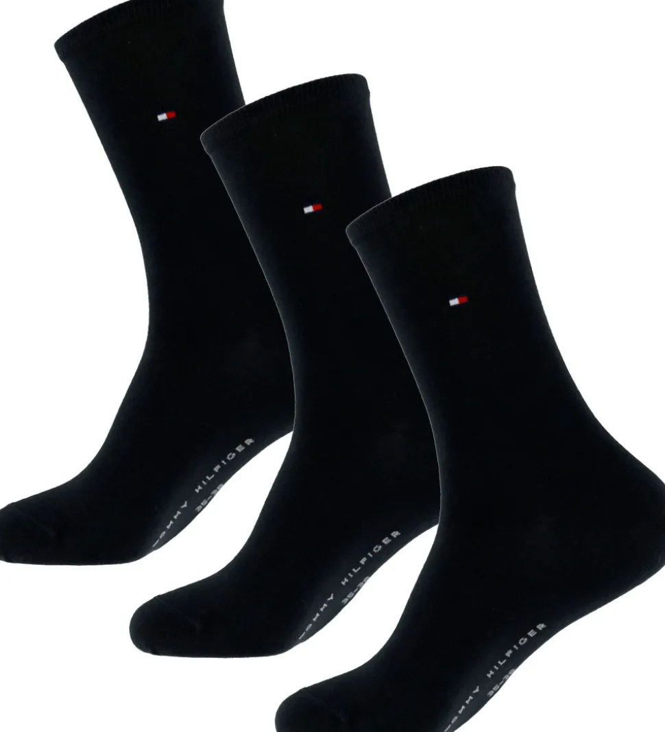 Elegante Tommy Hilfiger strømper i sort, solgt i en 3-pak. Strømperne har en klassisk lang model og er dekoreret med det ikoniske Tommy Hilfiger logo nær anklen. De har en smal ribkant øverst, som sikrer en god pasform. Under foden står brandnavnet Tommy Hilfiger tydeligt.