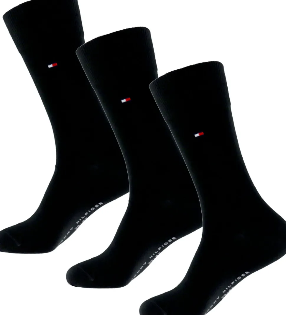 Elegante Tommy Hilfiger strømper solgt i en 3-pak i klassisk sort. Strømperne er prydet med det ikoniske logo ved anklerne og har en smal ribkant øverst.
