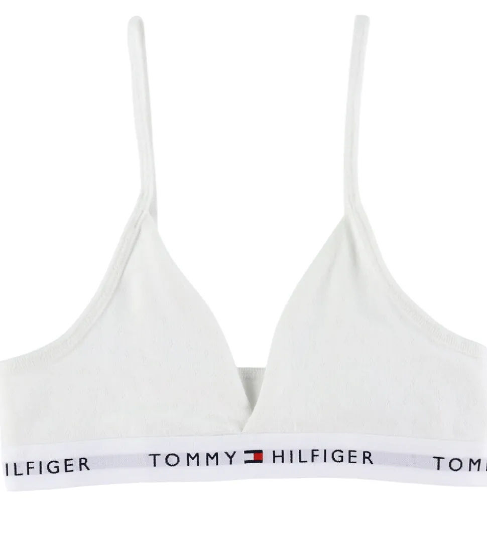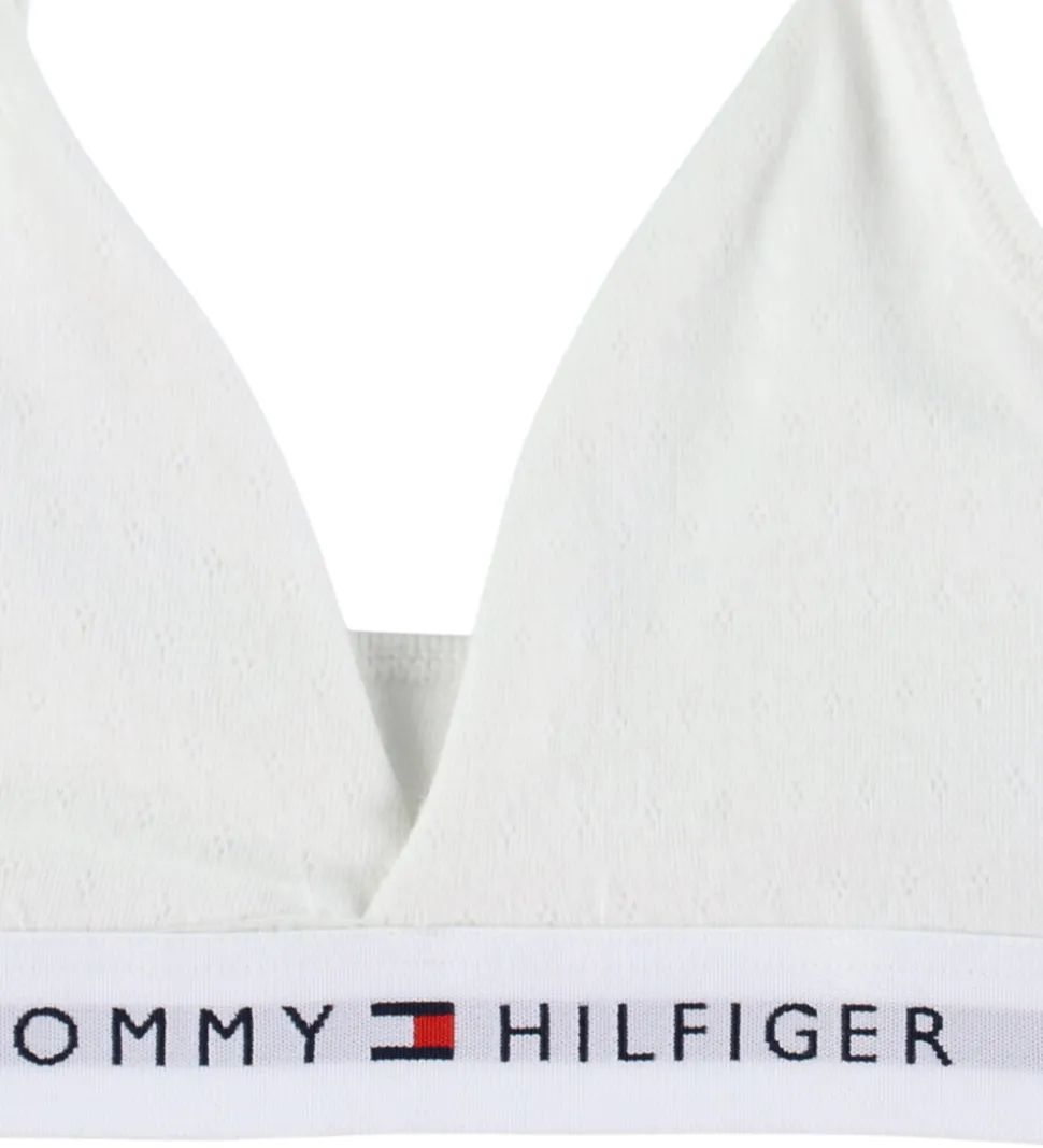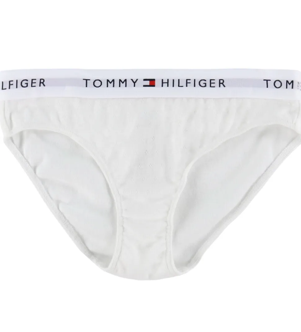 Fint Tommy Hilfiger undertøj i hvid med et fint hulmønster samt et diskret logoprint på elastikkanten. Sættet består af en top og et par trusser, der sikrer komfort og stil i hverdagen. Toppen har smalle, justerbar elastikstropper, og i bunden er der en bred elastikkant hele vejen rundt.